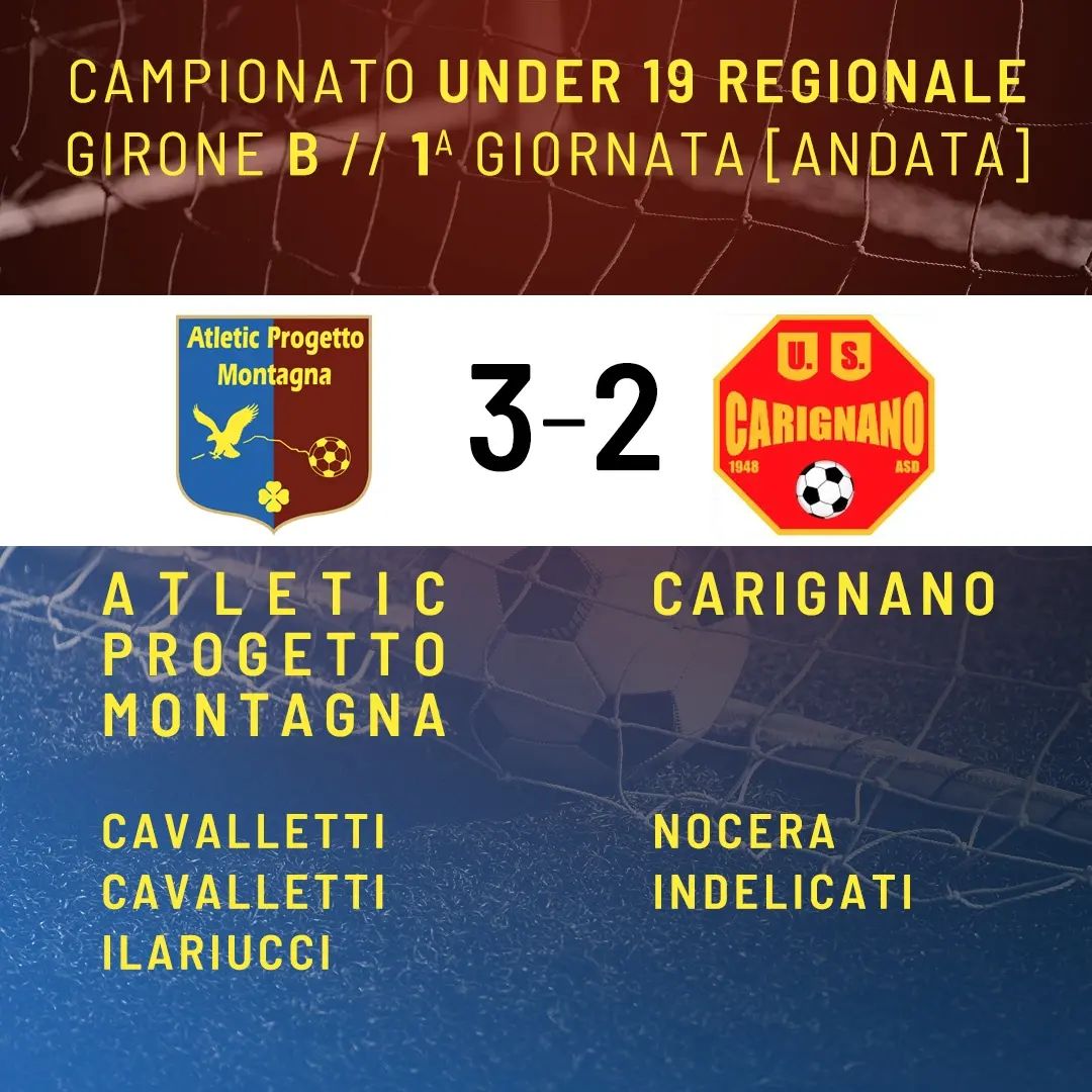 Campionato Under 19 Regionale – Girone B // 1^ giornata di andata Atletic Progetto Montagna – Carignano 3-2 Cavalletti (A), Cavalletti (A), Ilariucci (A), Nocera (C), Indelicati(C)Read More