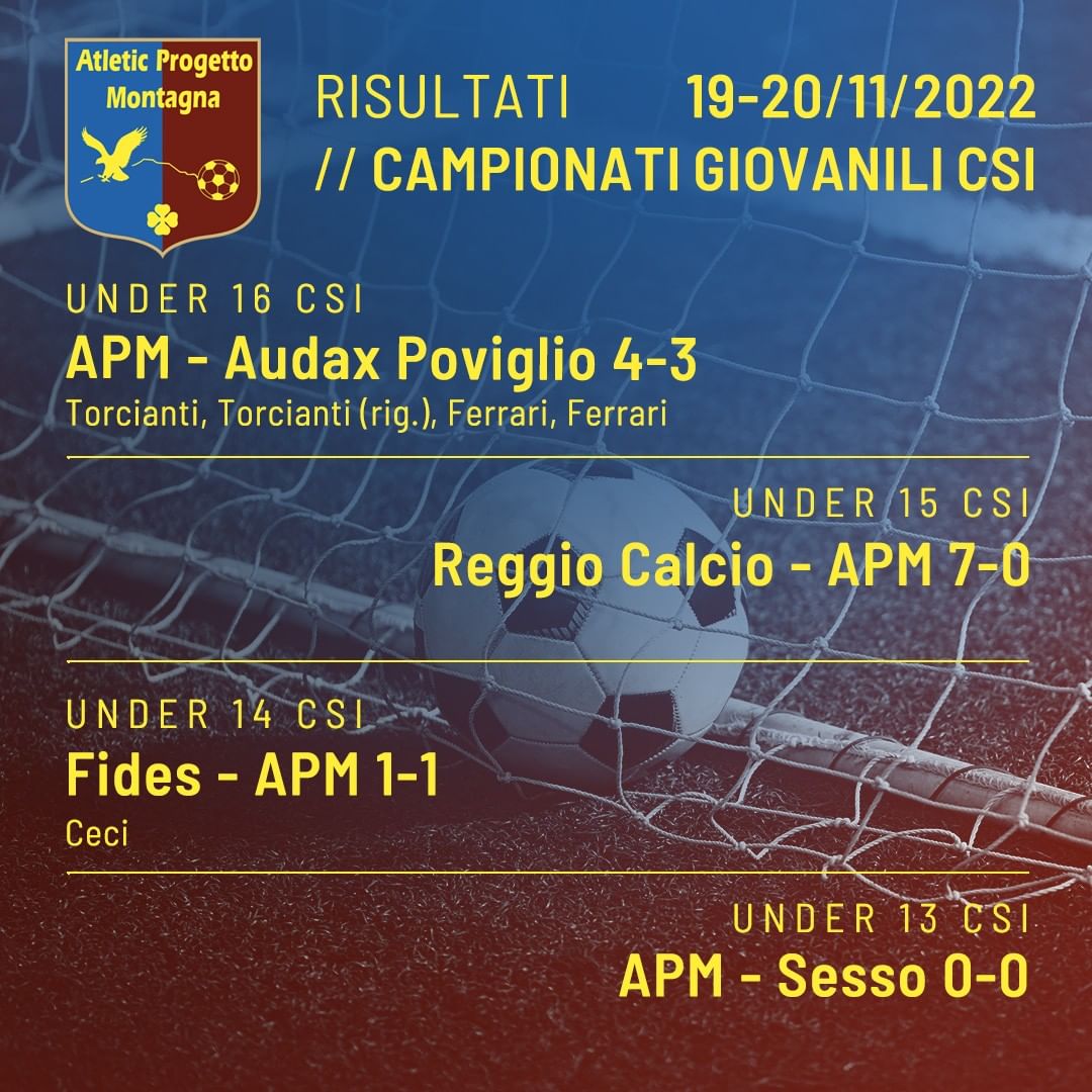 Under 16 CSI APM – Audax Poviglio 4-3 Torcianti, Torcianti [rig], Ferrari, Ferrari Under 15 CSI Reggio Calcio – APM 7-0 Under 14 CSI Fides – APM 1-1 Ceci Under 13 CSI APM – Sesso 0-0Read More