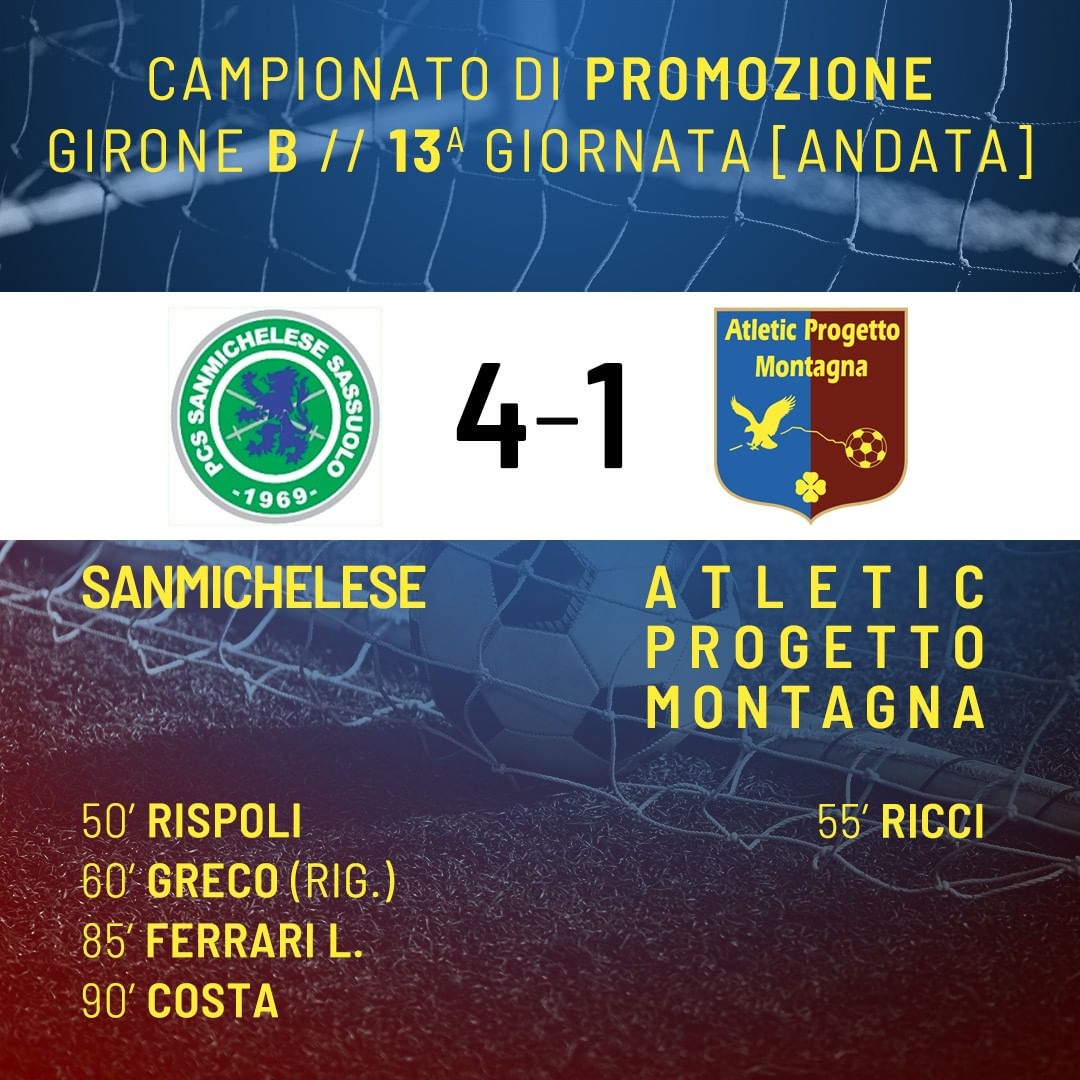 Campionato di Promozione – Girone B // 13^ giornata di andata Sanmichelese – Atletic Progetto Montagna 4-1 50′ Rispoli (S), 60′ Greco [rig] (S), 85′ Ferrari L. (S), 90′ Costa (S), 55′ Ricci (A)Read More
