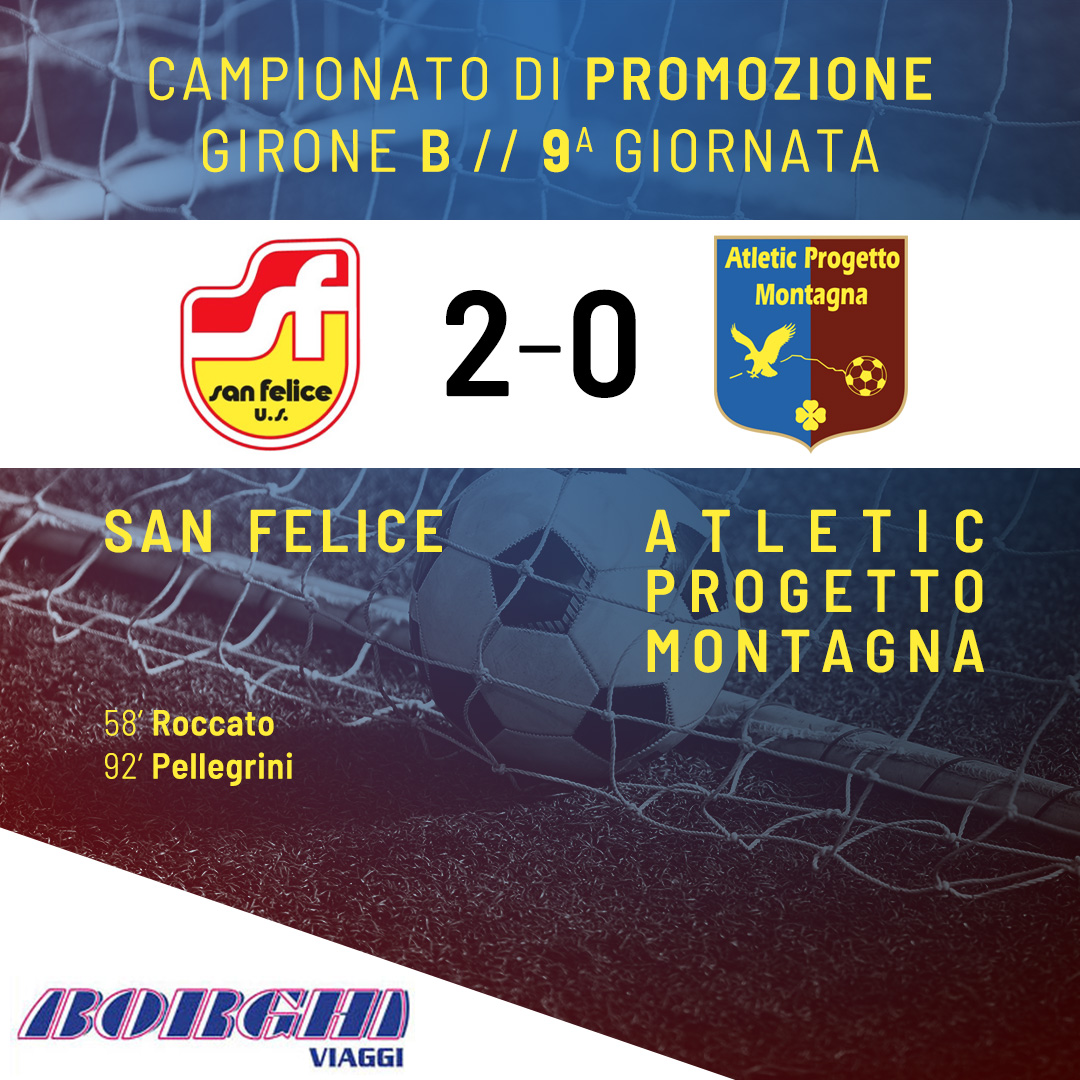 Campionato di Promozione – Girone B // 9^ giornata San Felice – Atletic Progetto Montagna 2-0 58′ Roccato (S), 92′ Pellegrini (S)
